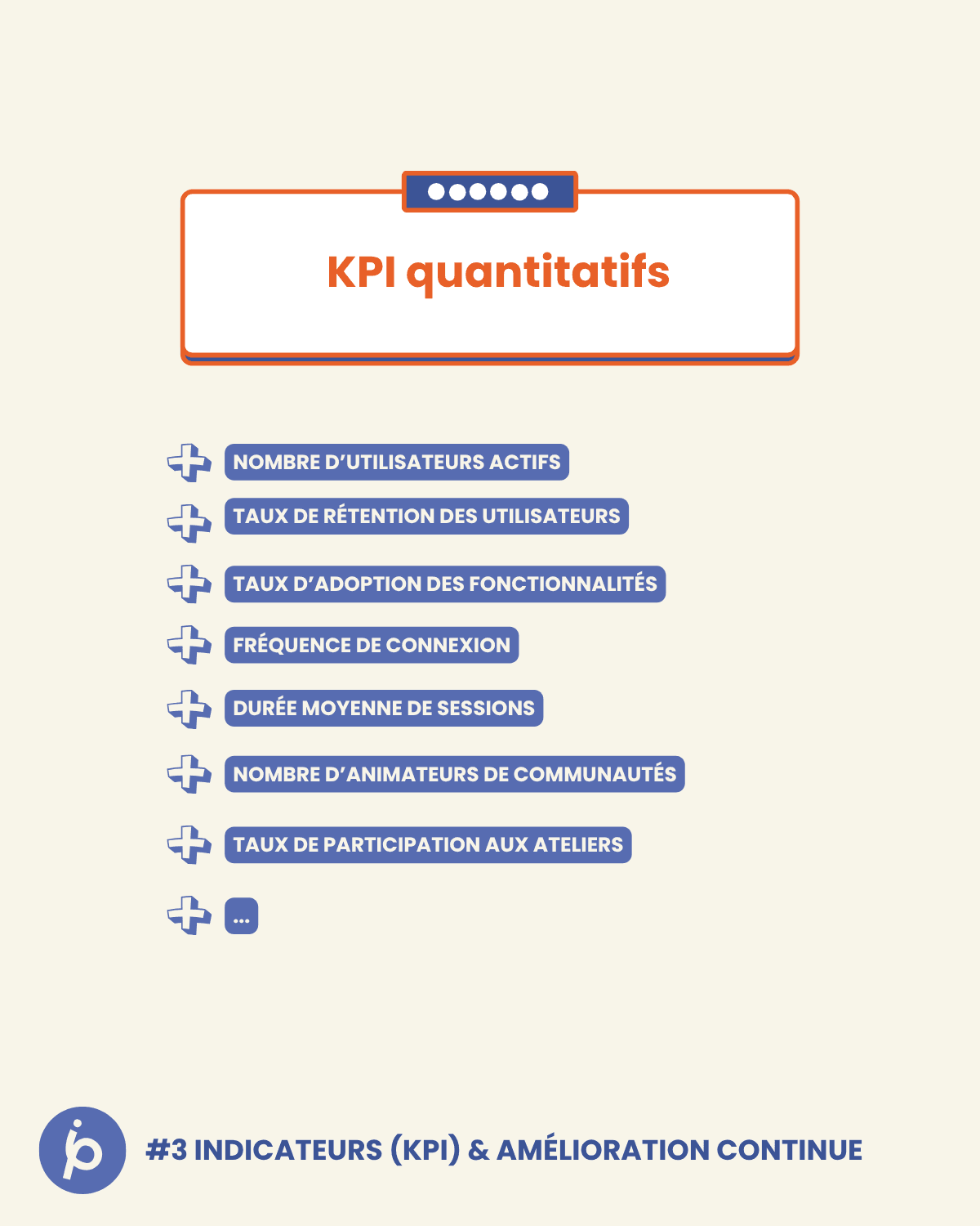 Les KPIs qualitatifs évaluent des aspects plus subjectifs mais tout aussi importants pour mesurer la qualité des interactions sur la plateforme :